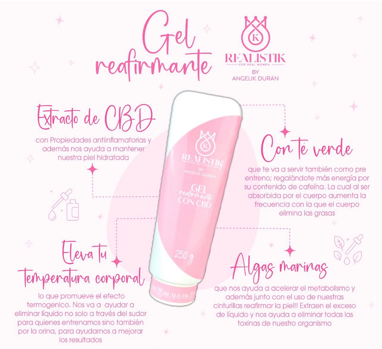 Este gel combina ingredientes naturales como CBD, castaño de indias, té verde y algas marinas para reafirmar la piel, mejorar la circulación y reducir la apariencia de celulitis. Su efecto frío-calor activa la piel de forma rápida y promueve un efecto termogénico que potencia los resultados al usar cinturillas o durante el ejercicio.