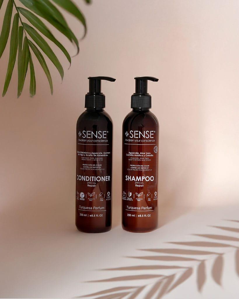 El Kit Básico Sense es la combinación perfecta para quienes buscan un cuidado capilar natural, efectivo y responsable. Este kit incluye nuestro Shampoo Reparador y Acondicionador Reparador, ambos en presentaciones de 500ml, ideal para una rutina completa que revitaliza y protege tu cabello. Además, el kit viene en un empaque ecológico, eligiendo entre una bolsa de tela reutilizable o una caja de cartón reciclable, alineado con nuestro compromiso con la sostenibilidad.